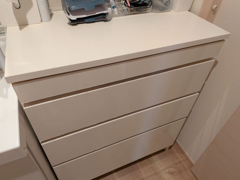 洗濯乾燥機の上にはA4の書類ケースが2つ並べて置いてあります。子供2人の服入れです。
