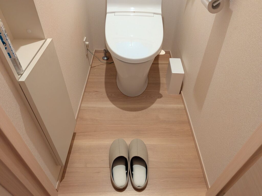 トイレスリッパを替えたらその日に、「トイレマット要らなくない?」となり、トイレマットも古かったので捨ててしまいました。