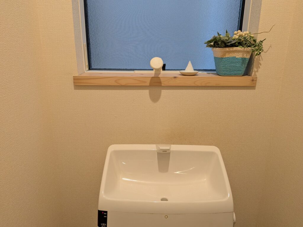 本当はトイレの出入口に左右に1つずつ置くと良いそうですが、絶対に子供が倒すだろうと思い、窓際に1つ置くだけにしました。