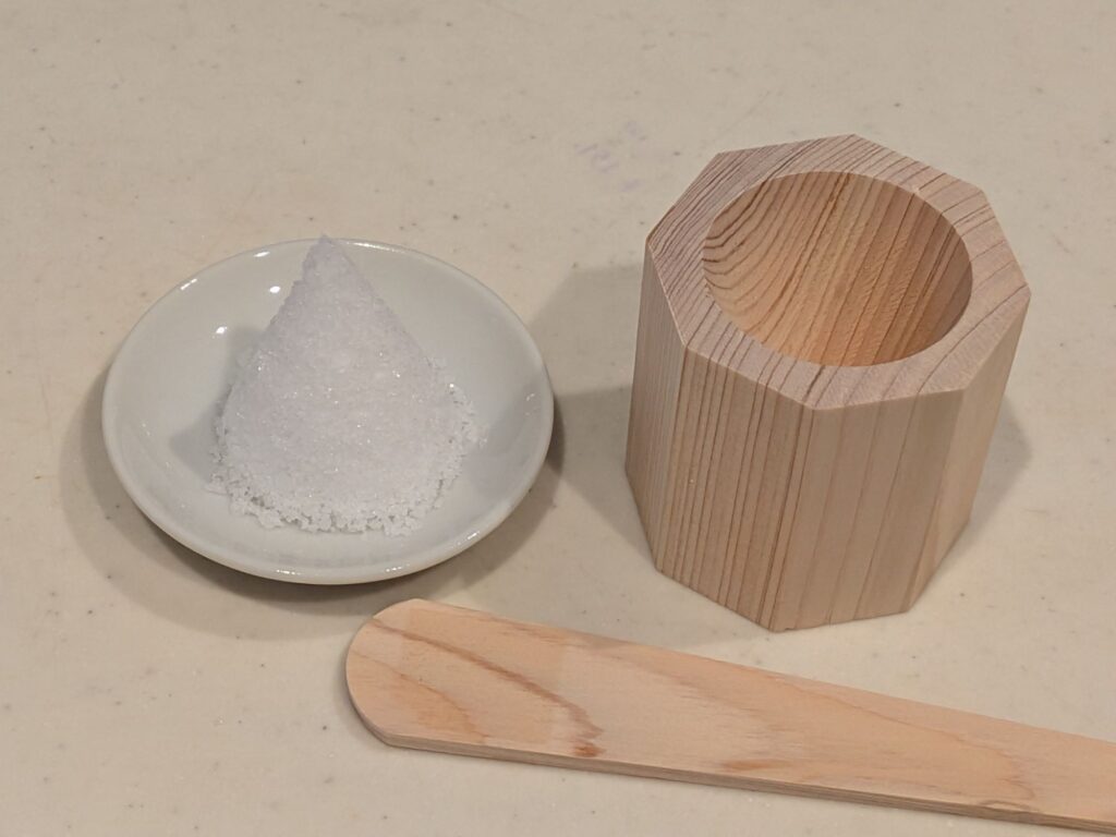 塩はスーパーで売っている粗塩。(これじゃないと円錐形にならない。)