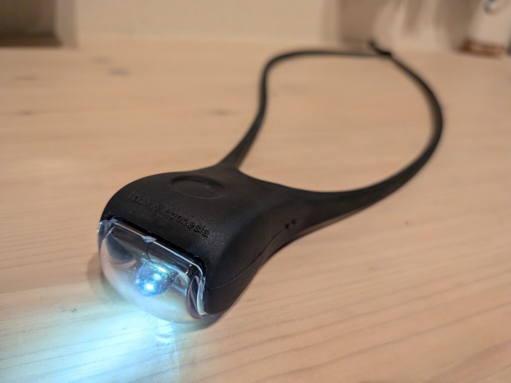 これがとても良くて、首にかけると丁度よく足元と前方を照らしてくれます。