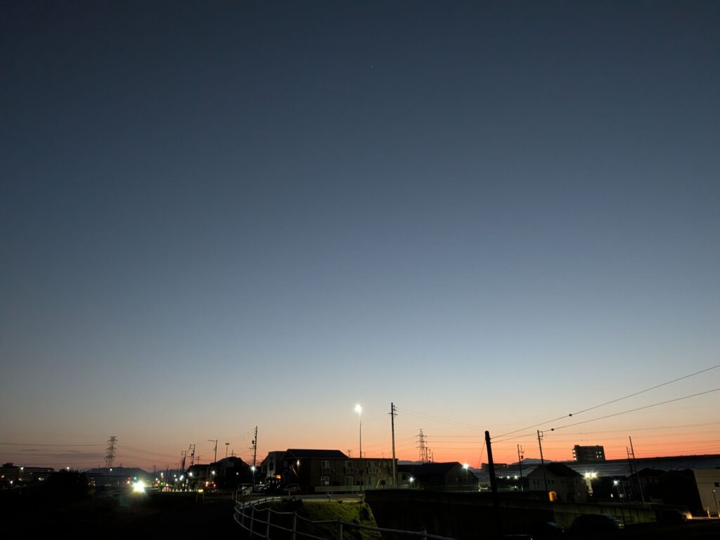 今の時期(12月)、家を出たばかりの時はまだ暗く星空が見られます。
