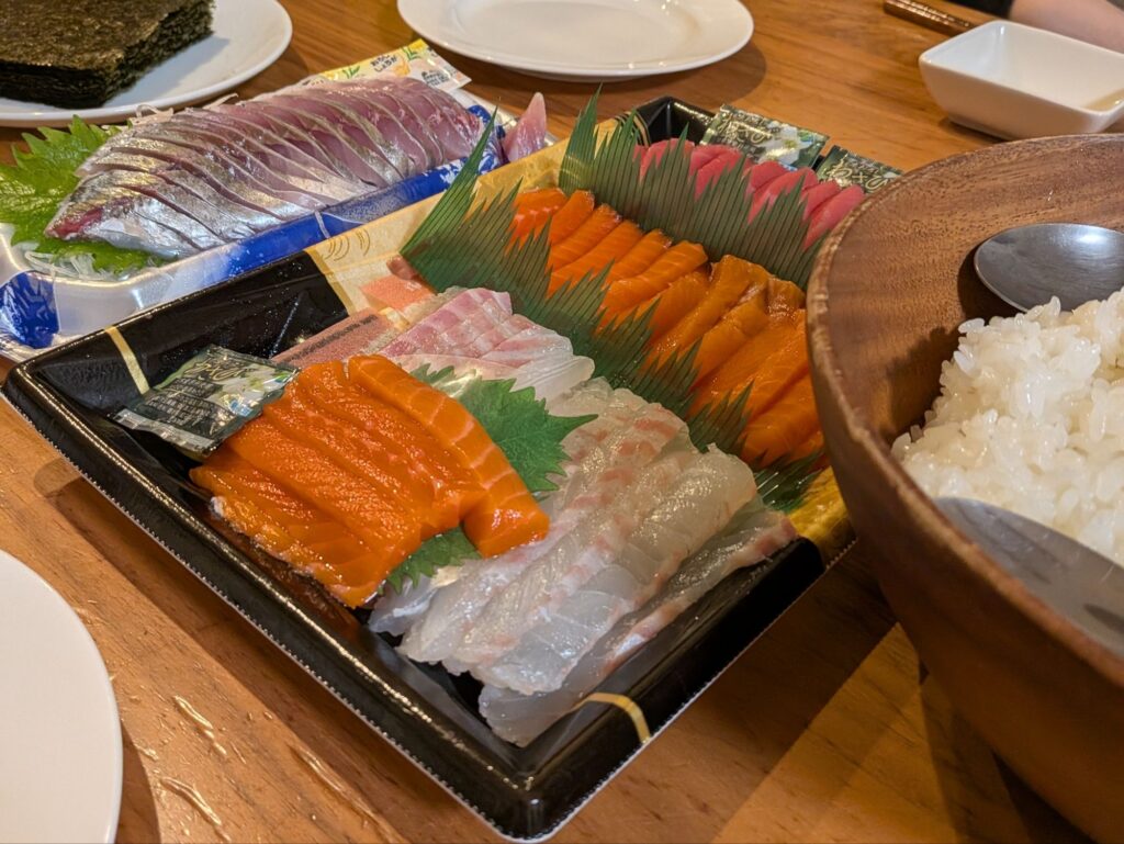 おもてなし料理は何も出来ないので、刺身をお魚屋さんに切ってもらい子供達も皆で手巻き寿司パーティー。とても楽しい時間を過ごすことが出来ました。